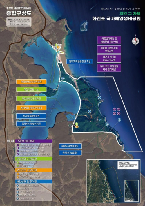 국가해양생태공원은 해양보호구역 및 그 인근 해양자산의 가치를 보전하고 지속 가능한 이용을 위해 국가가 공원으로 직접 지정해 관리하는 제도다. 지난해 10월∼12월 해수부는 광역자치단체를 대상으로 국가해양생태공원 지정 수요조사를 실시했고 고성 화진포를 포함한 총 10곳이 지정을 희망한 바 있다.